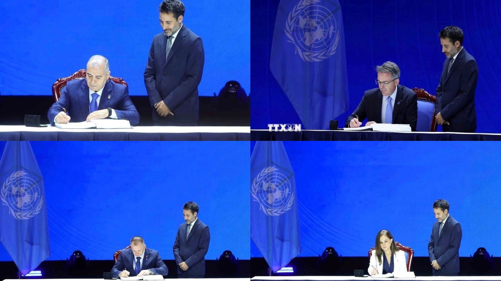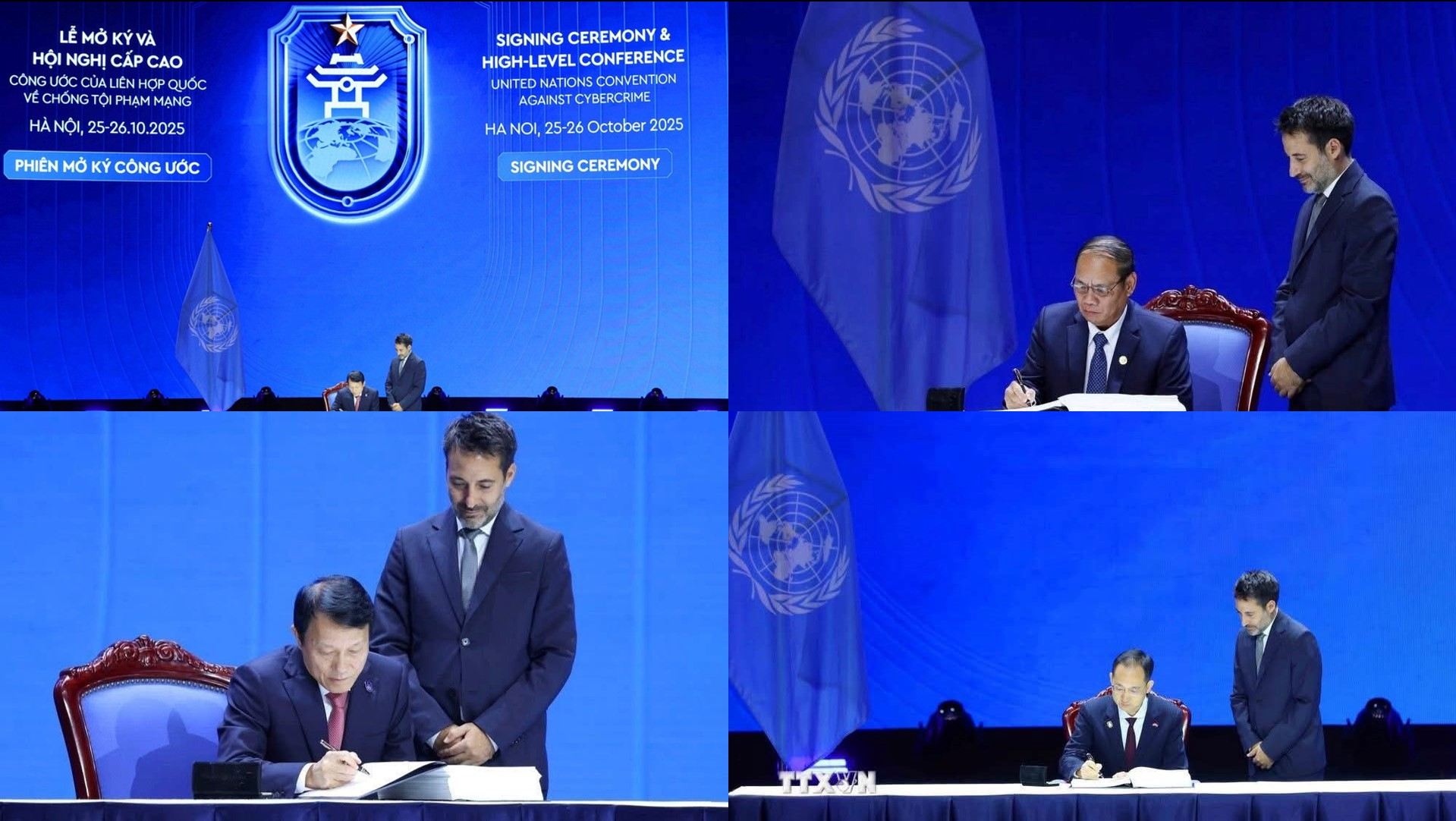 Các Trưởng đoàn tiến hành ký Công ước của Liên hợp quốc về Chống tội phạm mạng.
