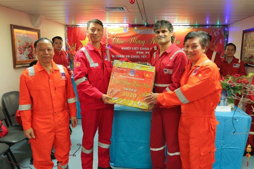 As part of activities on the occasion of Lunar New Year 2020, on January 22nd 2020, PVEP Chairman Tran Hong Nam and working delegation paid a visit to the production platforms of Dai Hung and Thang Long - Dong Do, off-shore Vietnam to meet employees and contractors here.