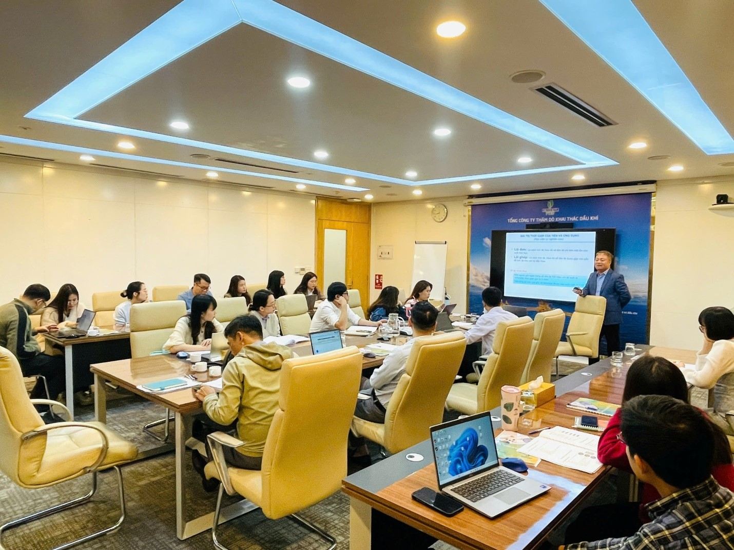Trong hai ngày 14 và 15/01/2026, Tổng công ty Thăm dò Khai thác Dầu khí (PVEP) đã phối hợp cùng Trung tâm Bồi dưỡng nâng cao (ATC) – Trường Đại học Dầu khí Việt Nam (PVU) tổ chức thành công chương trình đào tạo “Quản trị đầu tư” theo hình thức trực tiếp tại Hà Nội và trực tuyến tại TP. Hồ Chí Minh.