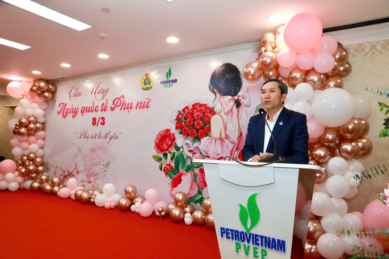 Đồng chí Hoàng Ngọc Trung, Ủy viên Ban Thường vụ Đảng ủy, Phó Tổng Giám đốc PVEP gửi lời chúc mừng, tri ân tới toàn thể nữ cán bộ, nhân viên toàn Tổng công ty nhân dịp kỷ niệm 8/3.