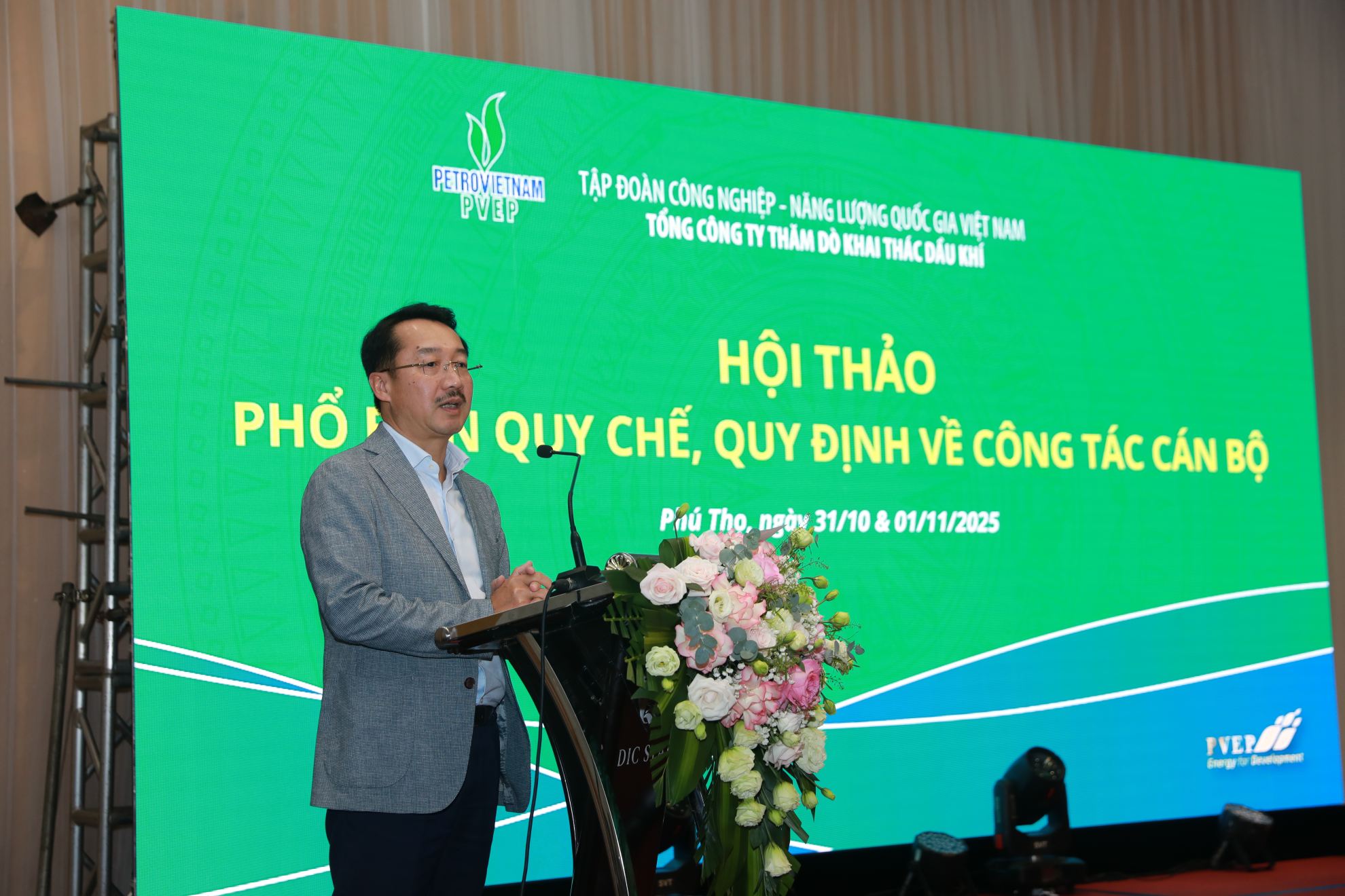 Phát biểu bế mạc Hội thảo, Phó Tổng Giám đốc Hoàng Ngọc Trung ghi nhận và đánh giá cao tinh thần nghiêm túc, trách nhiệm, cùng những đóng góp tâm huyết của các đơn vị tham dự. Đồng chí nhấn mạnh, việc thống nhất nhận thức và cách thức thực hiện trong toàn PVEP là yêu cầu quan trọng, đảm bảo công tác cán bộ được triển khai đồng bộ, công khai, minh bạch và hiệu quả.