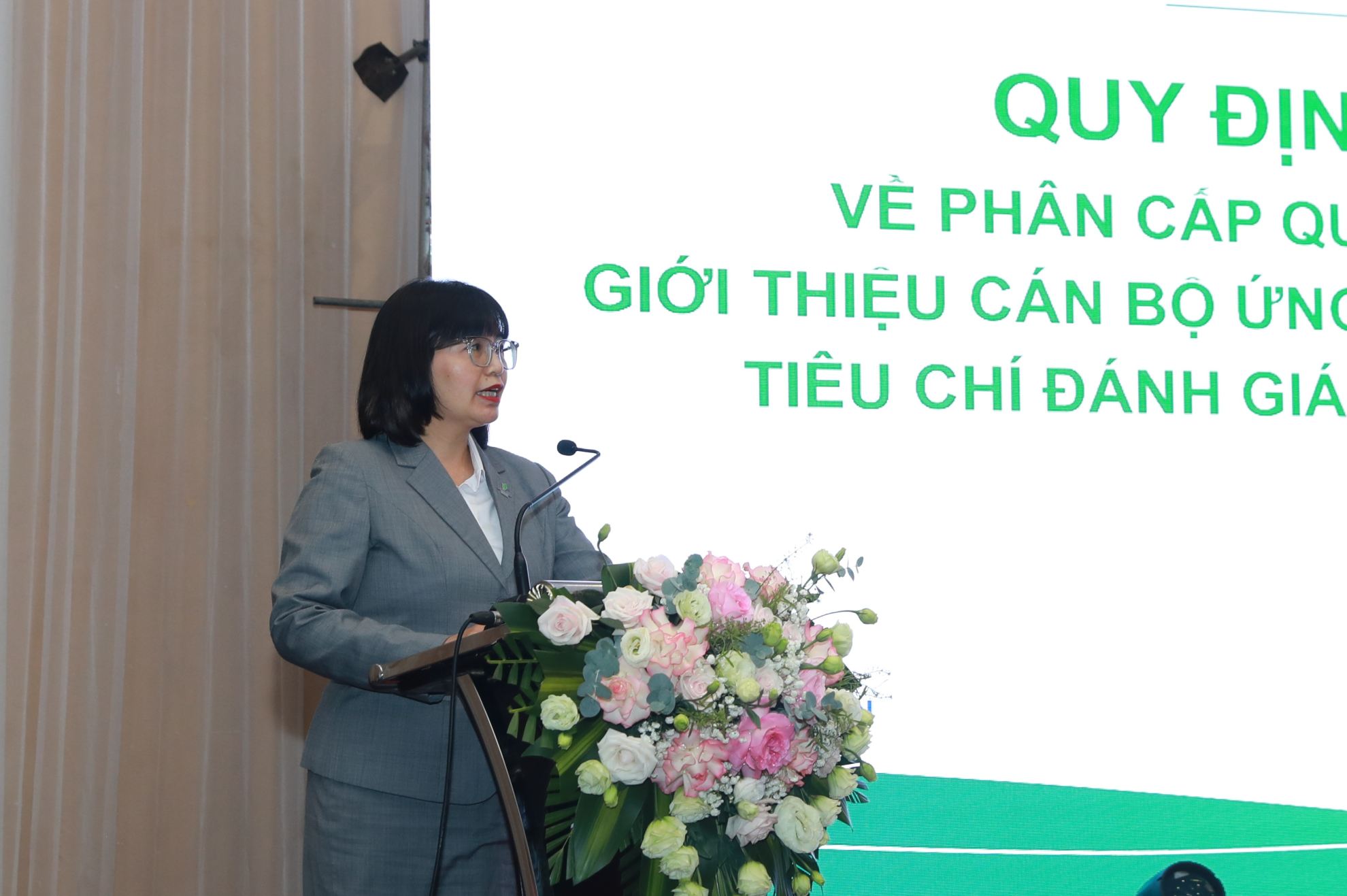 Bà Đỗ Thái Hằng – Trưởng Ban Quản trị Nguồn nhân lực trình bày tại Hội thảo