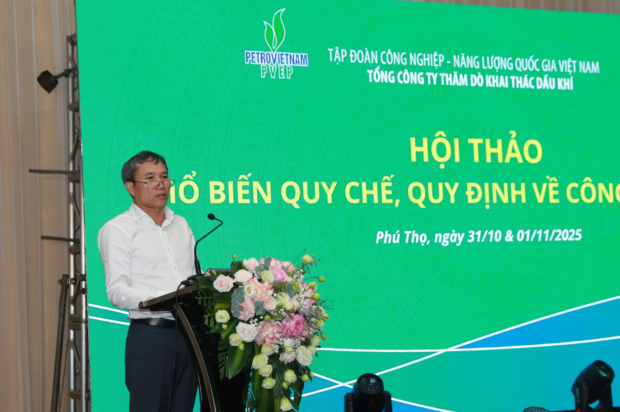 Ngày 31/10/2025, tại tỉnh Vĩnh Phúc, Tổng Công ty Thăm dò Khai thác Dầu khí (PVEP) đã tổ chức Hội thảo “Phổ biến Quy chế, Quy định về công tác cán bộ” với sự tham dự của đại diện Lãnh đạo Tổng công ty, Lãnh đạo các Ban, Văn phòng, Chi nhánh, Đơn vị và Dự án trực thuộc.