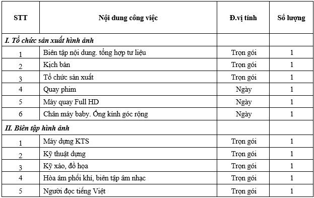 Thực hiện kế hoạch triển khai phim giới thiệu về Tổng công ty Thăm dò Khai thác Dầu khí (PVEP) chiếu tại Hội nghị Tổng kết năm 2025. PVEP trân trọng kính mời các quý Công ty có đủ năng lực và kinh nghiệm về sản xuất phim gửi chào giá các dịch vụ như kèm theo.